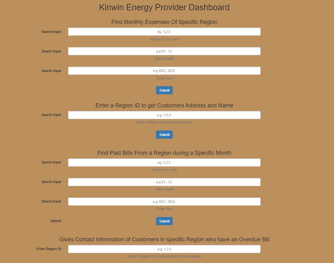 - Energy company wanting to track customer information such as address, bills, and outstanding bills.